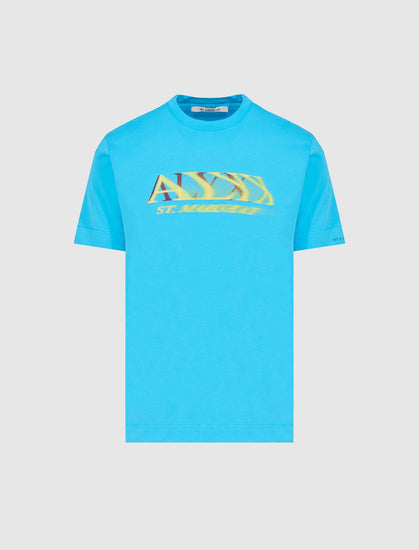 Short sleeve cotton t-shirt. Crewneck. Graphic logo text at chest.