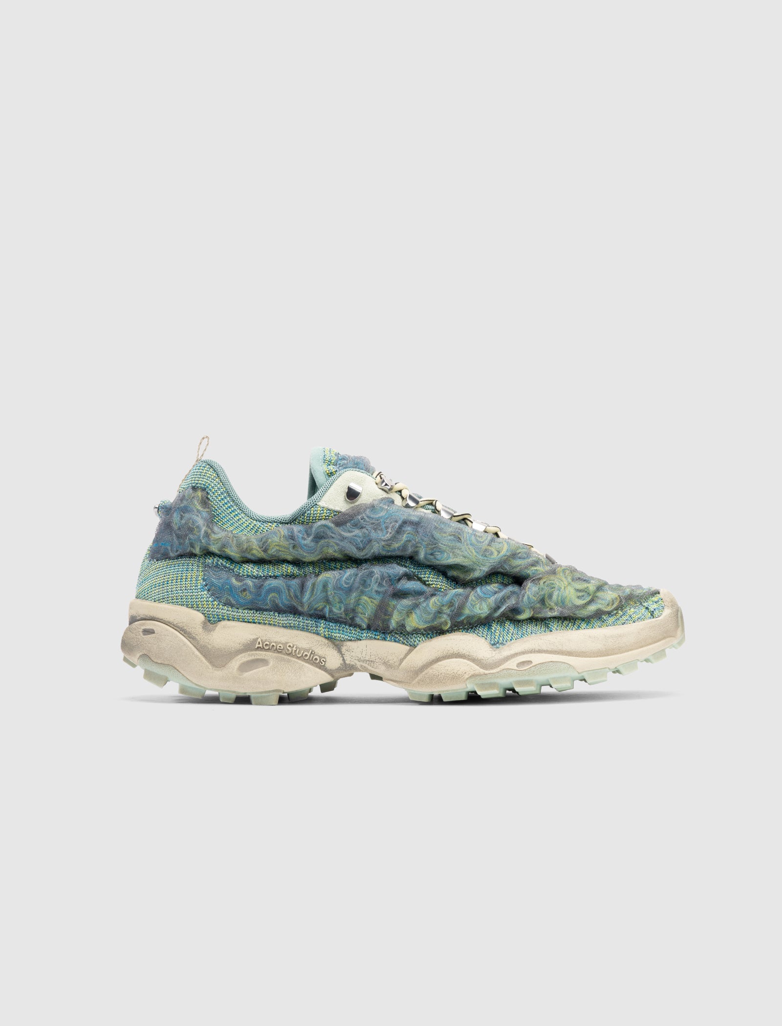 Lowtop sneakers. Woven synthetic textile upper. Sheer puffed accents on the side panels. Metal eyelets. Front lacing. Synthetic woven textile tongue. Composite foam midsole. Rubber outsole.
