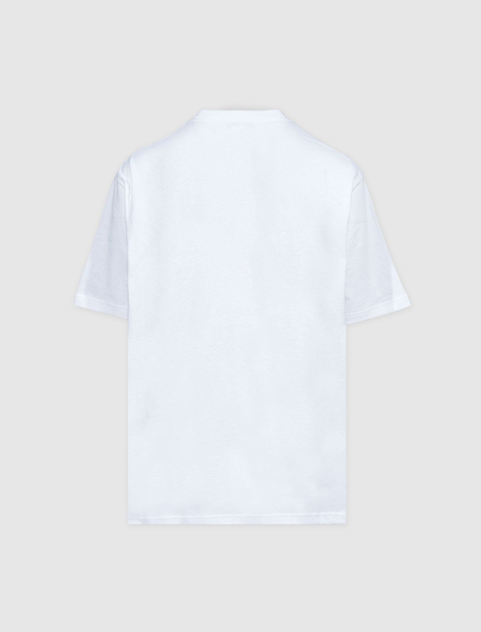 Short sleeve cotton t-shirt. Crewneck. Graphic floral prints, prints and logo text at front.