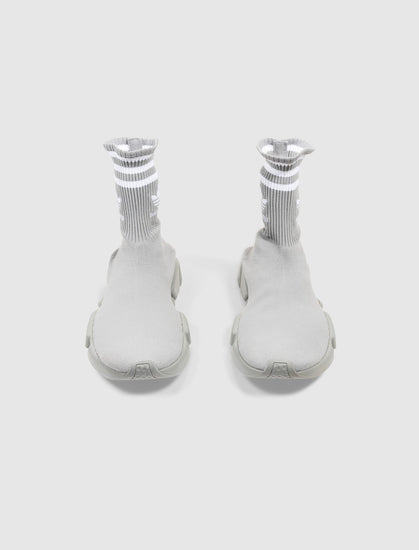 High top sneakers. Elasticated knit upper. Ribbed knit collar. Embroidered logo on the outer collar. EVA foam midsole. Rubber outsole.