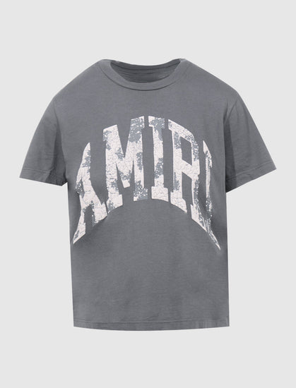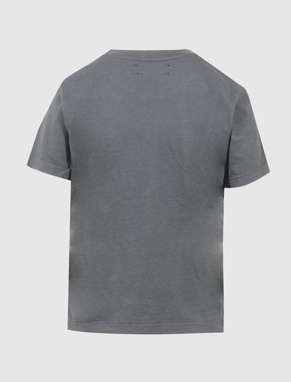 Short sleeve cotton t-shirt. Crewneck. Graphic logo text at chest. Straight hem.