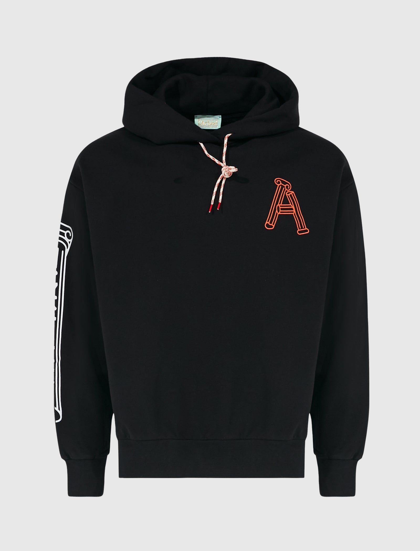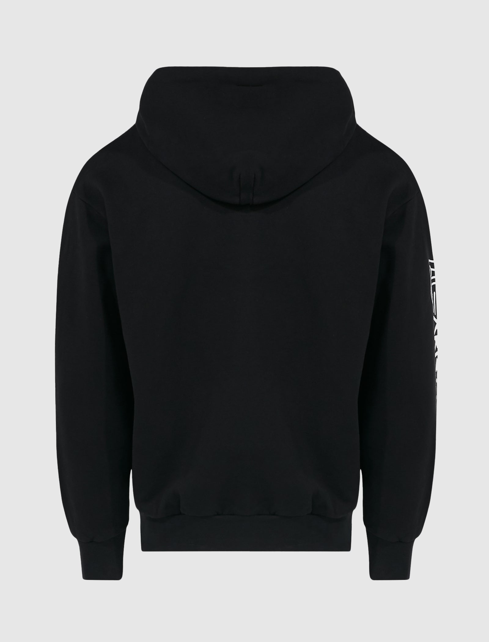 Pullover hoodie. Adjustable drawstring hood. Graphic logo at chest. Graphic logo text at sleeve. Ribbed cuffs and hem.