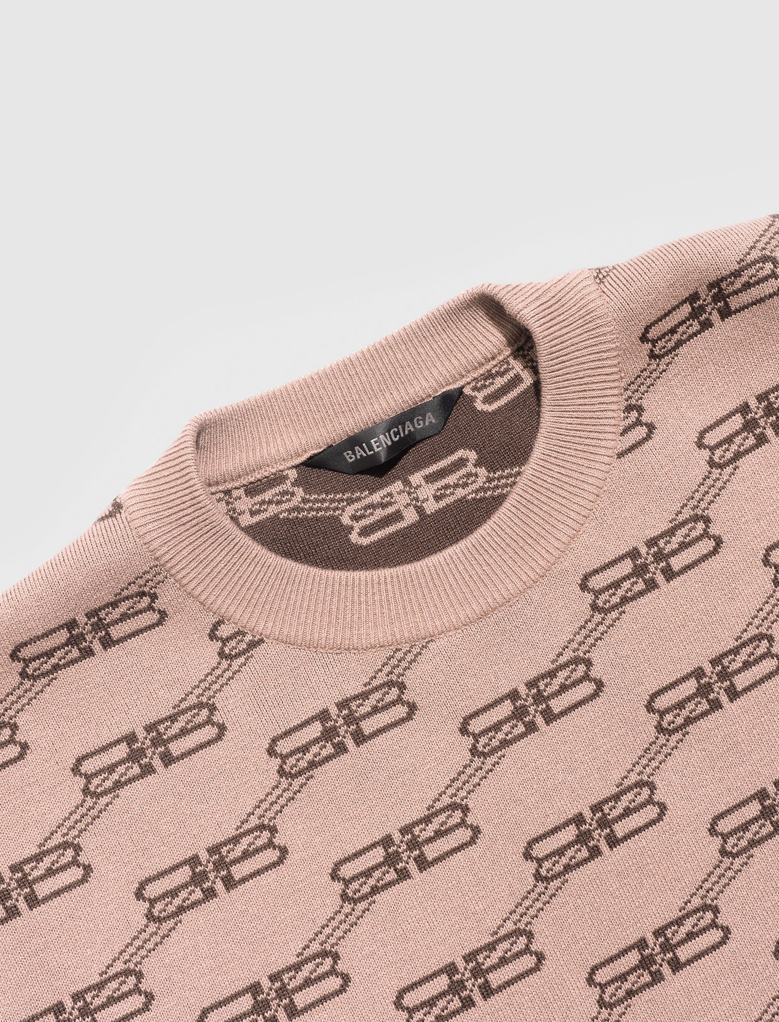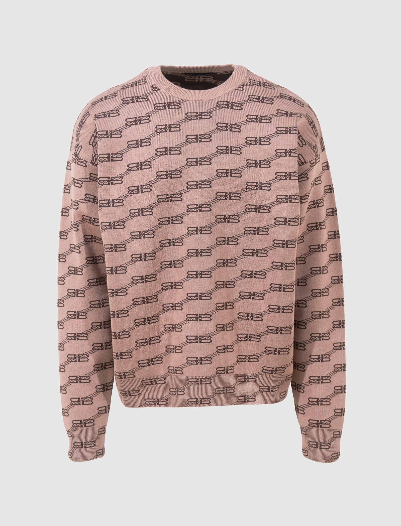 Pullover cotton-blend sweater. Crewneck. Monogram pattern throughout. Ribbed cuffs and hem.