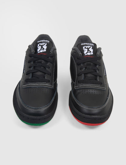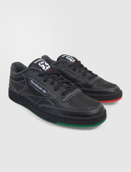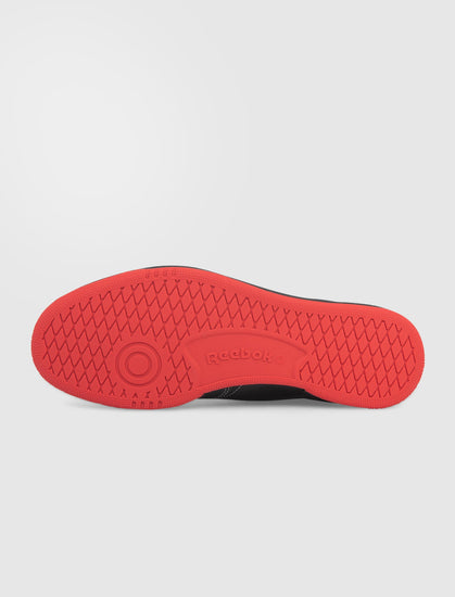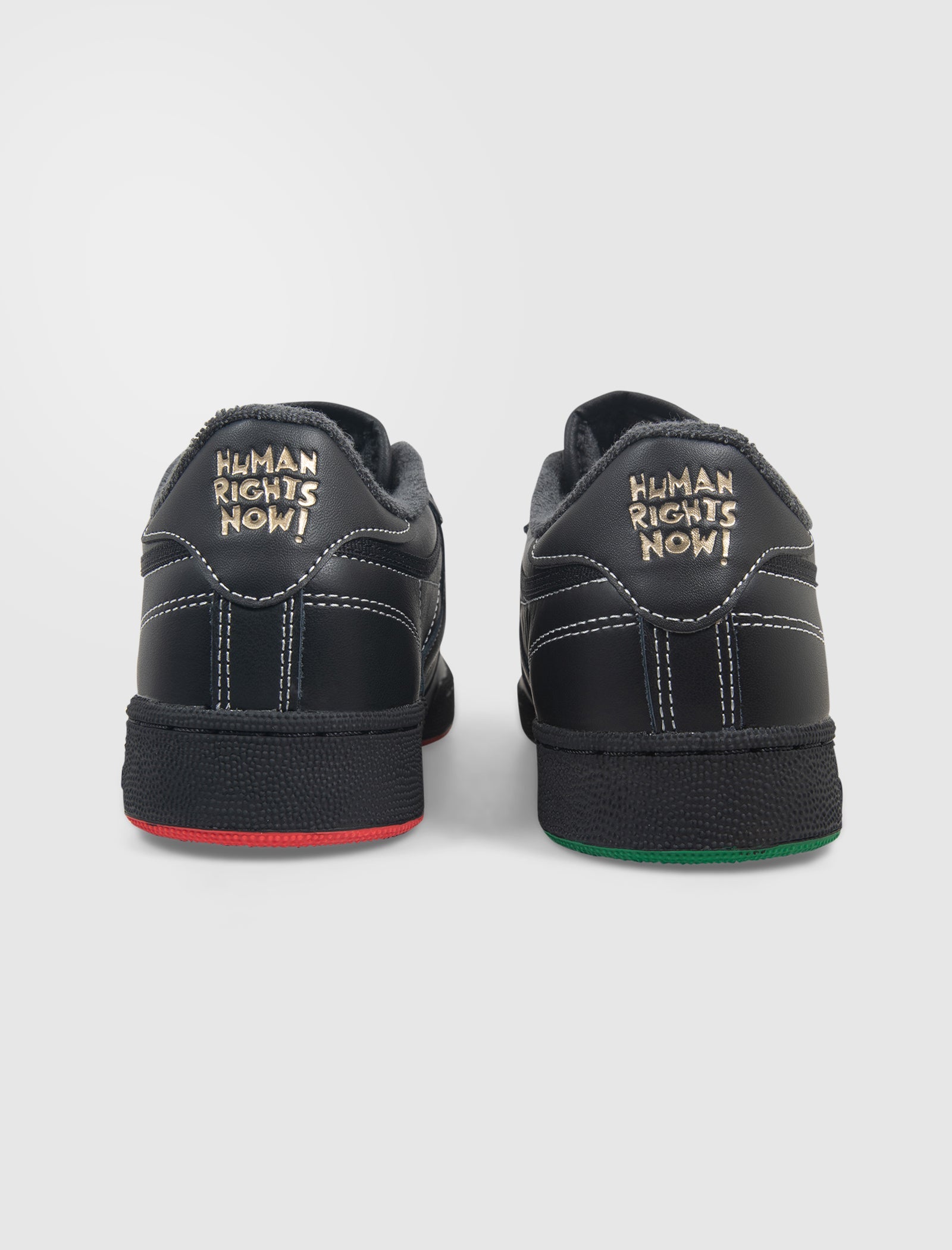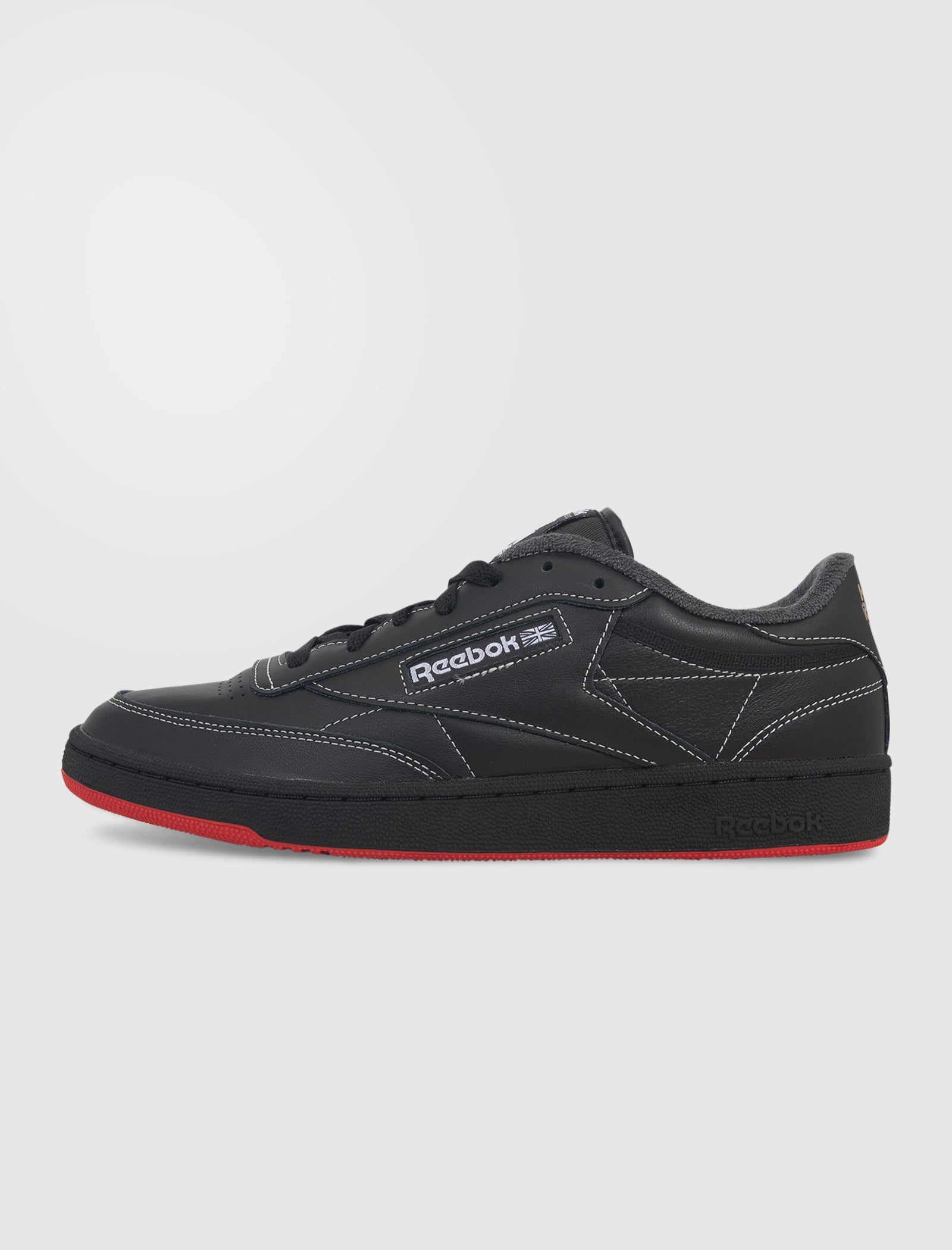 Low top sneaker. Leather upper. Overlays around the toe, side panel, and heel. Perforated toe box. Embroidered logo on the side panel. Stamped branding on the heel. Front lacing. Rubber midsole. Rubber outsole.
