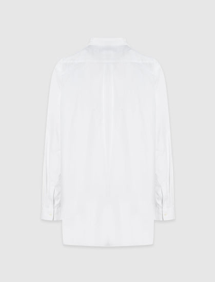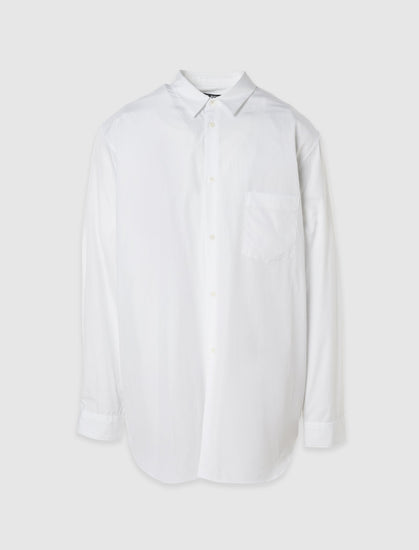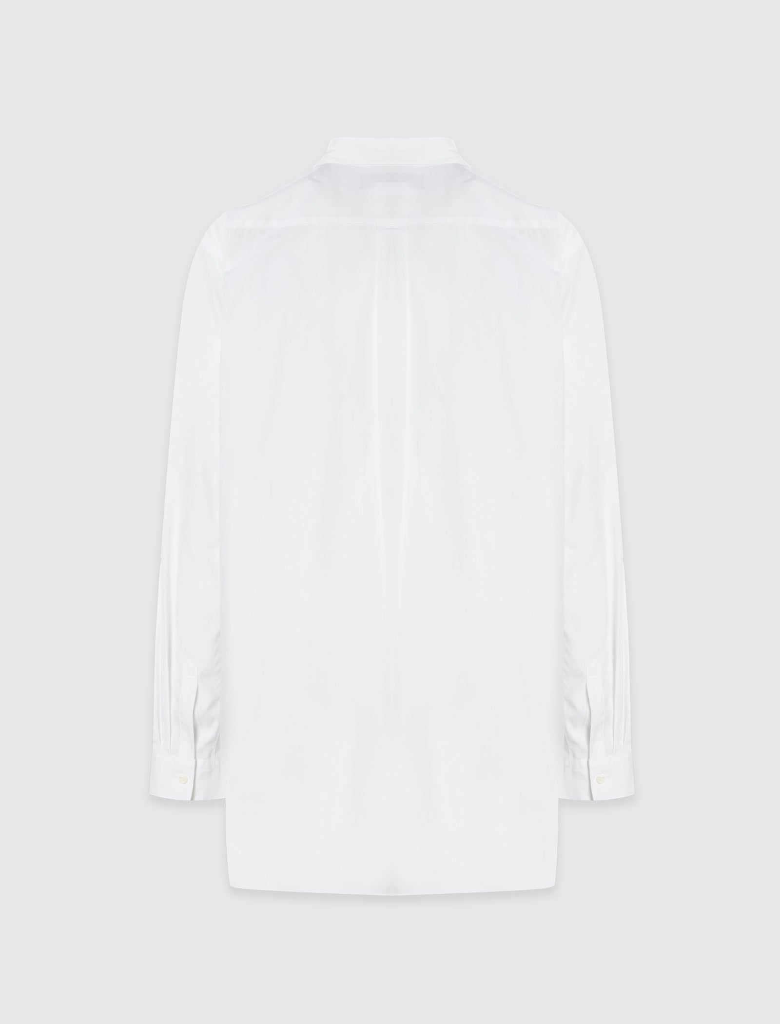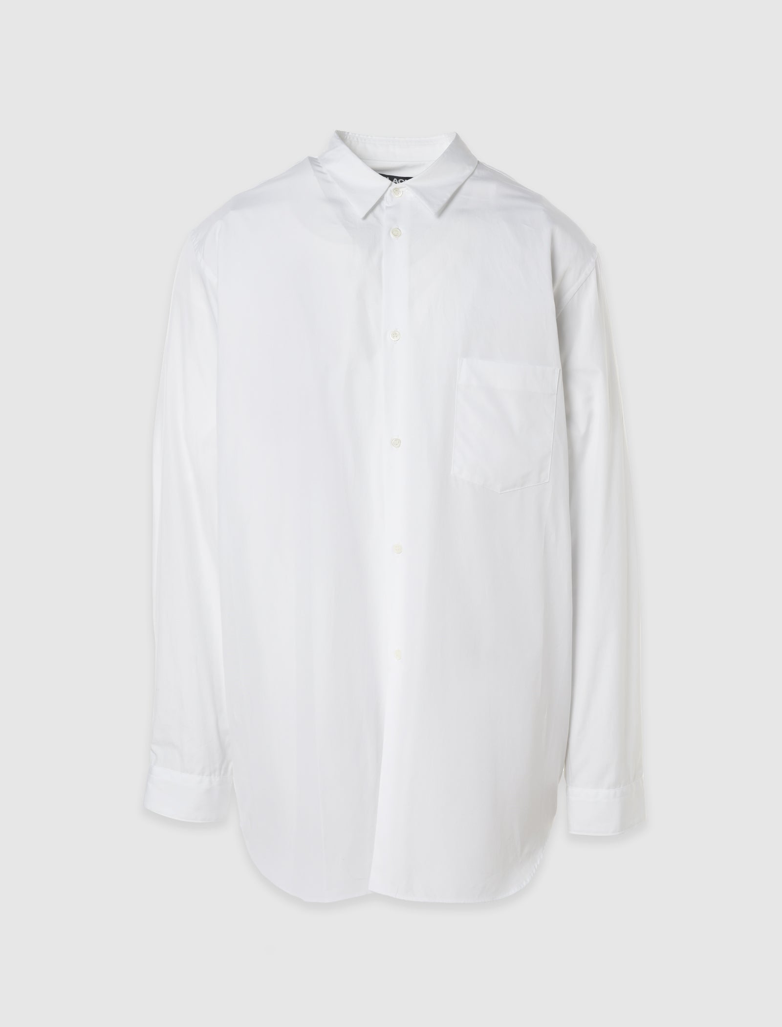 Oversize-fit long sleeve cotton shirt. Pointed collar. Single pocket at chest. Button sleeve cuffs. Button closures at front.