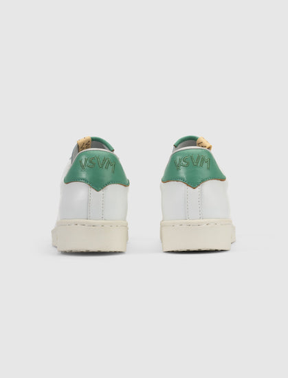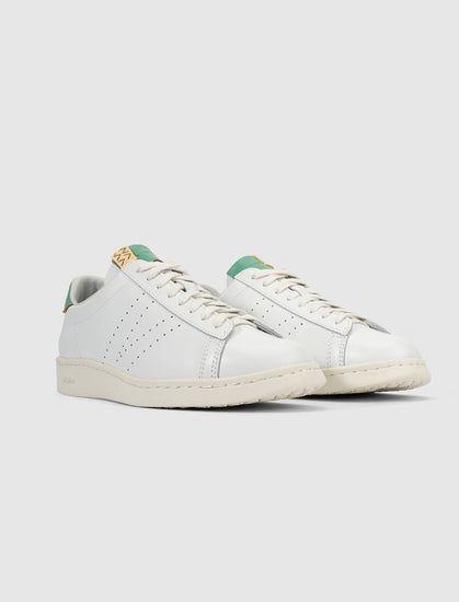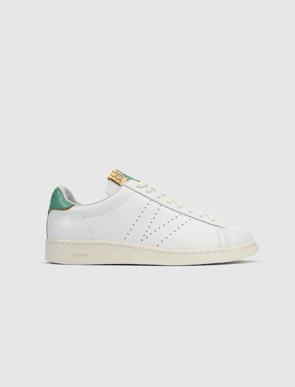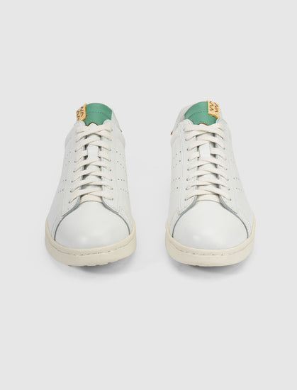 Low top sneakers. Leather upper. Leather tongue with a polyester logo tag stitched on the top. Front lacing. Perforated motifs on the side panels. Embroidered logo on the heel. Rubber midsole. Rubber outsole.