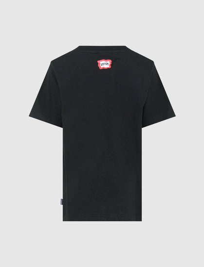 Short sleeve cotton t-shirt. Crewneck. Graphic logo print at chest. Graphic logo text at back.