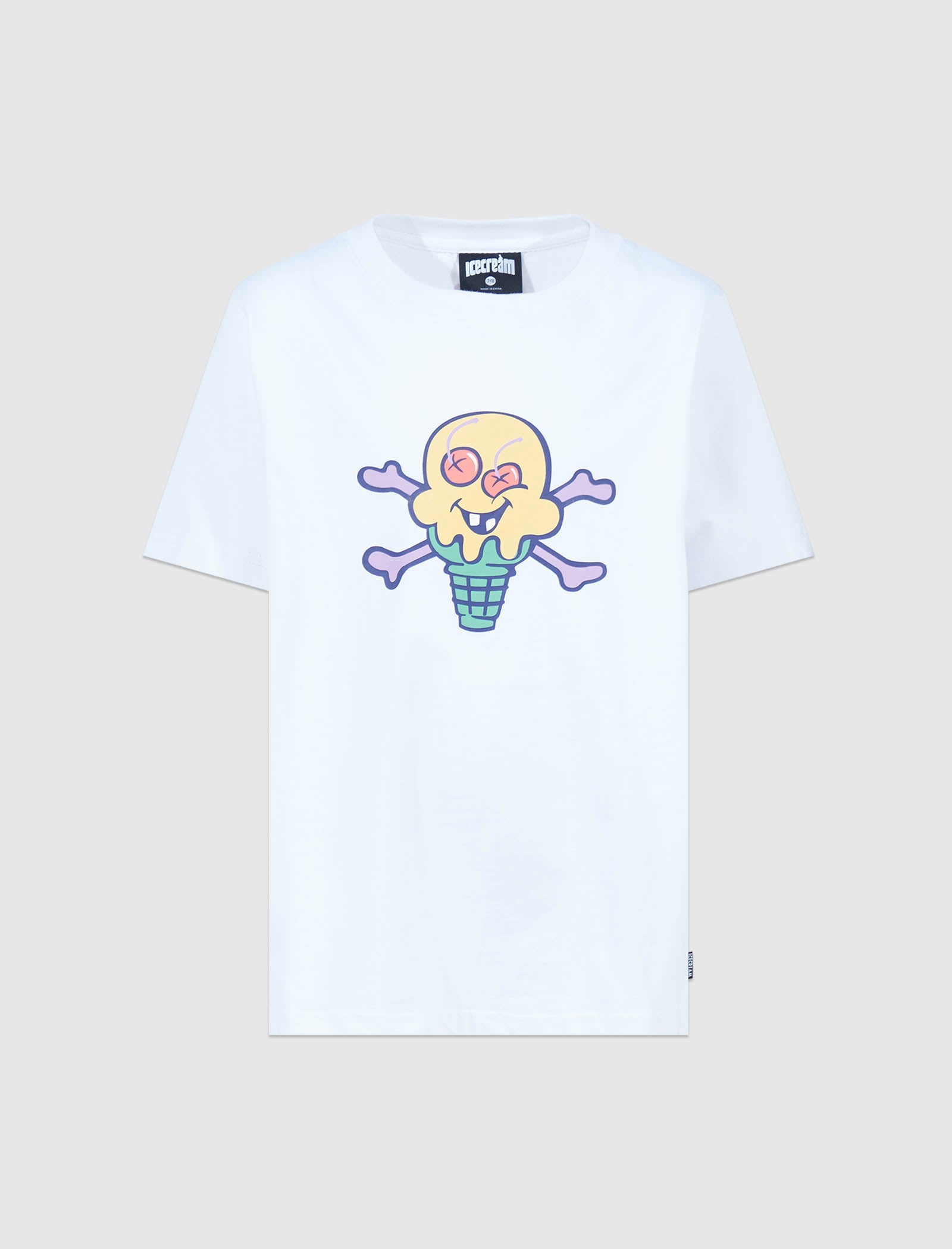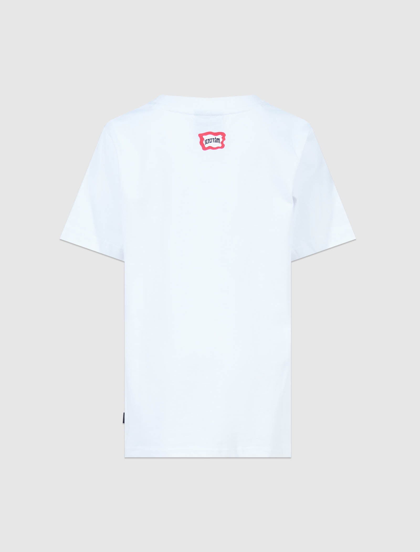 Short sleeve cotton t-shirt. Crewneck. Graphic logo print at chest. Graphic logo text at back.