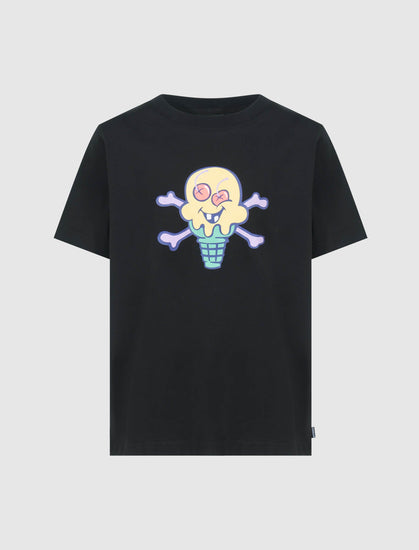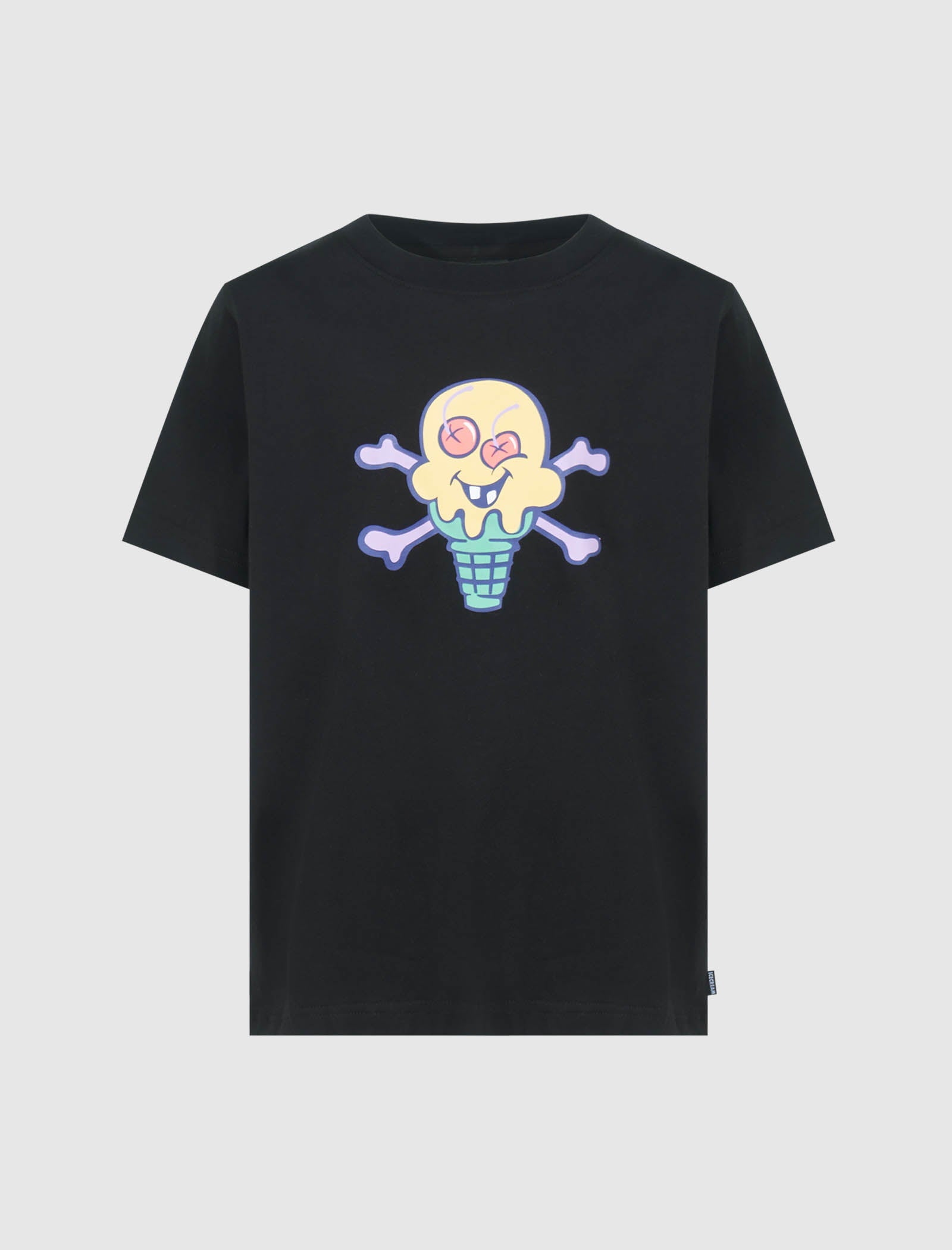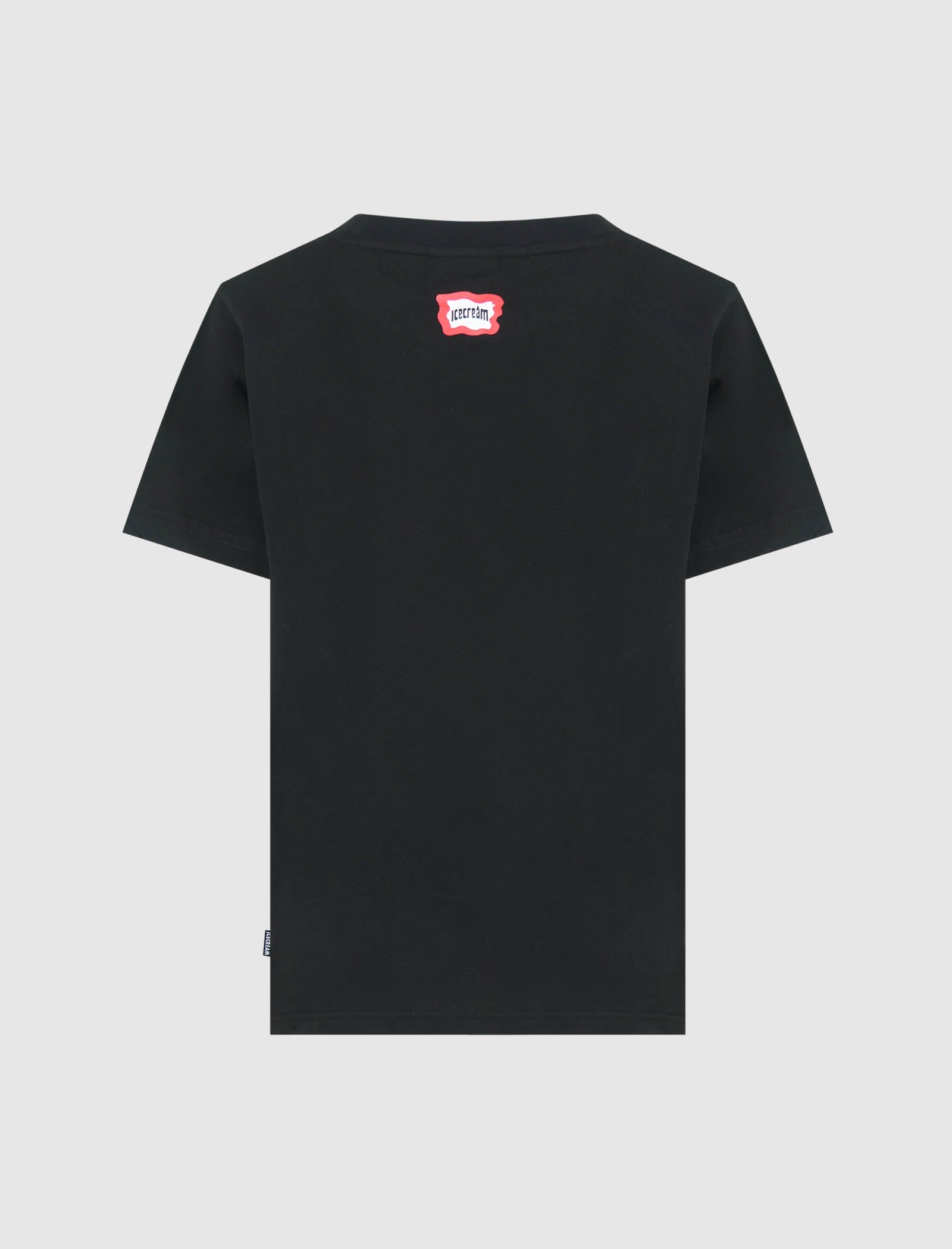 Short sleeve cotton t-shirt. Crewneck. Graphic logo print at chest. Graphic logo text at back.