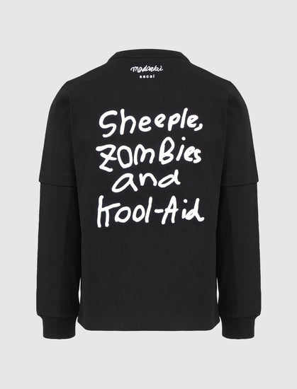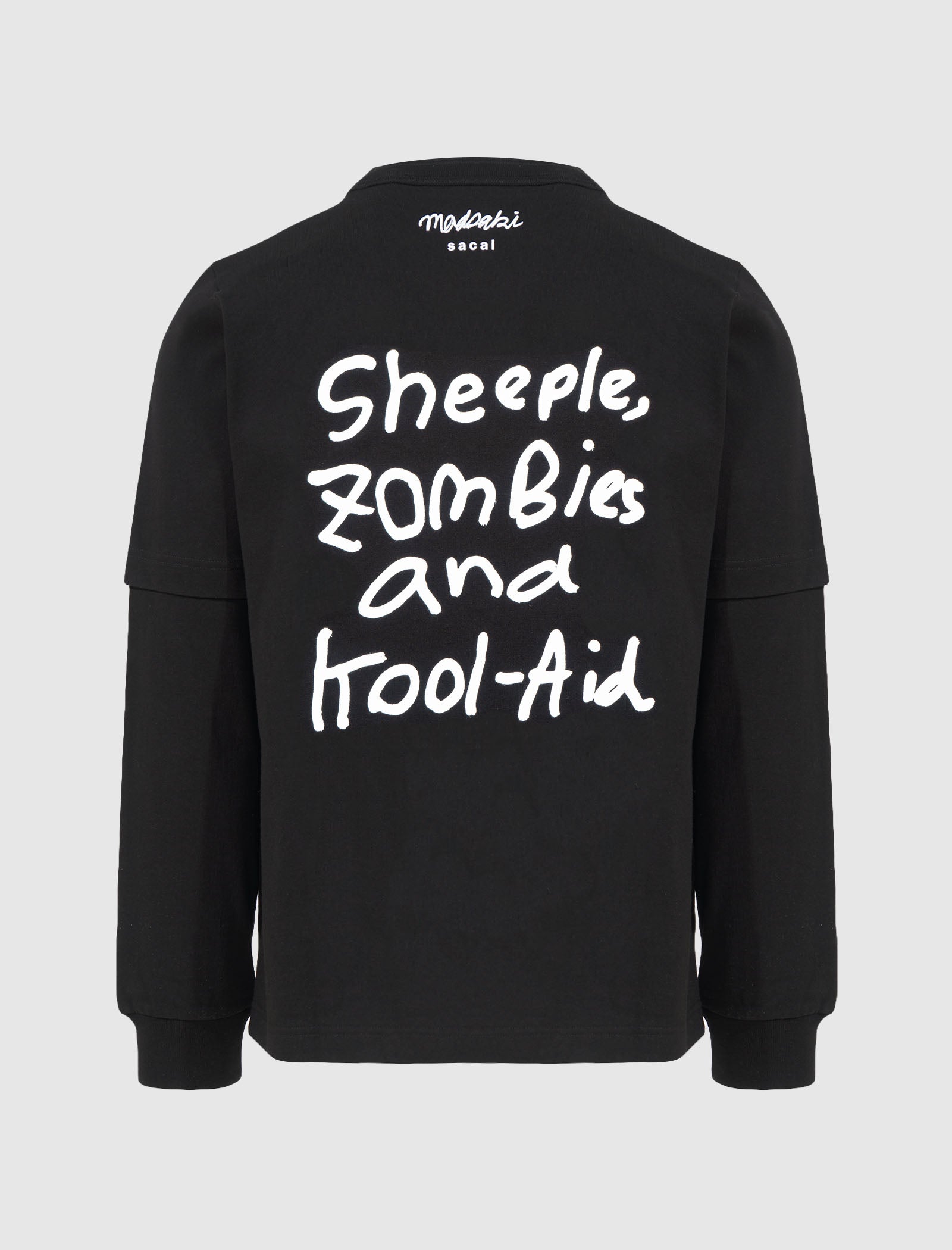 Long sleeve t-shirt. Ribbed crewneck collar. Graphic logo printed at left chest. Large graphic logo printed on the back. Layered sleeves.