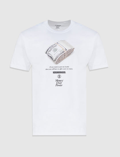 Short sleeve cotton t-shirt. Crewneck. Graphic print, logo and text at front.