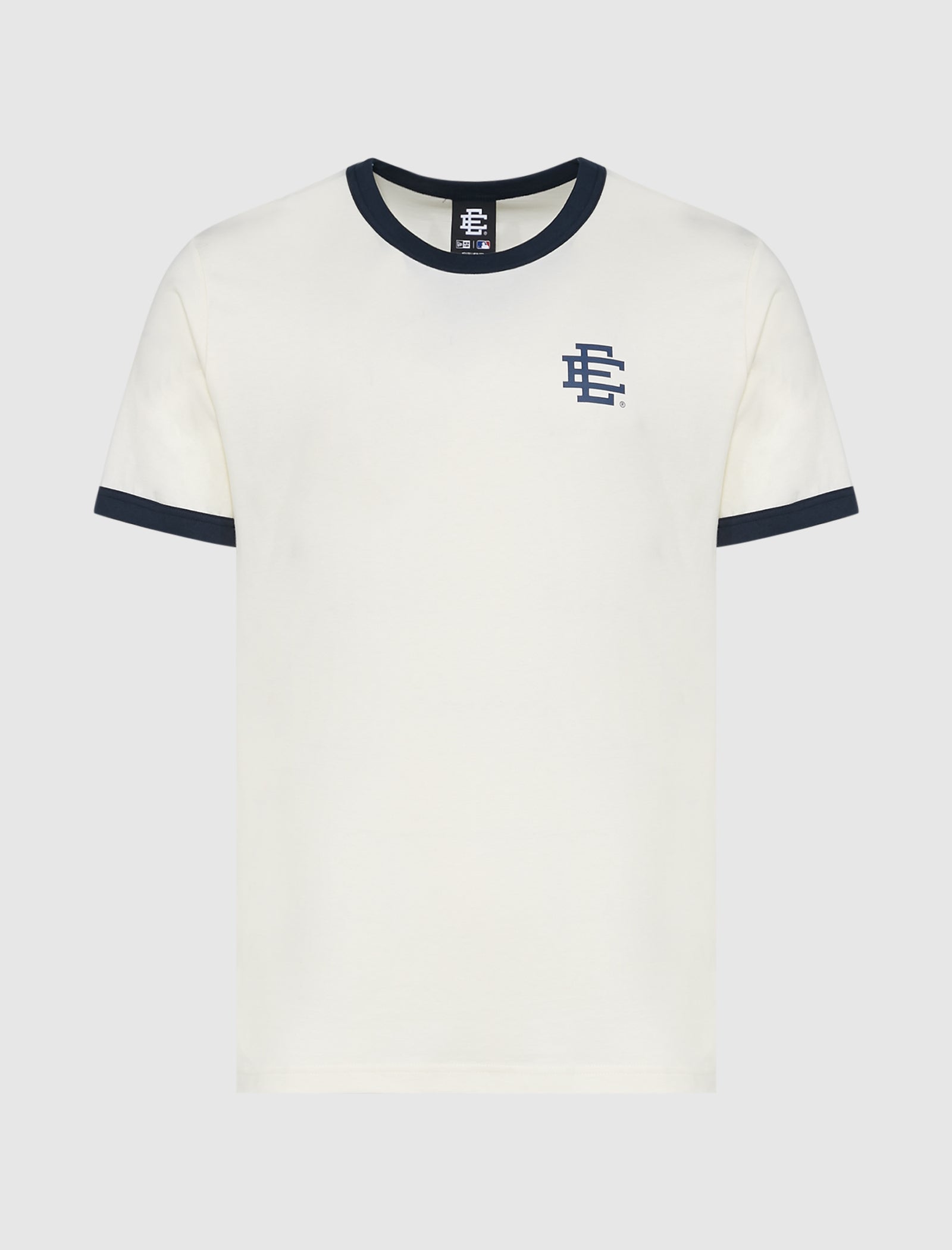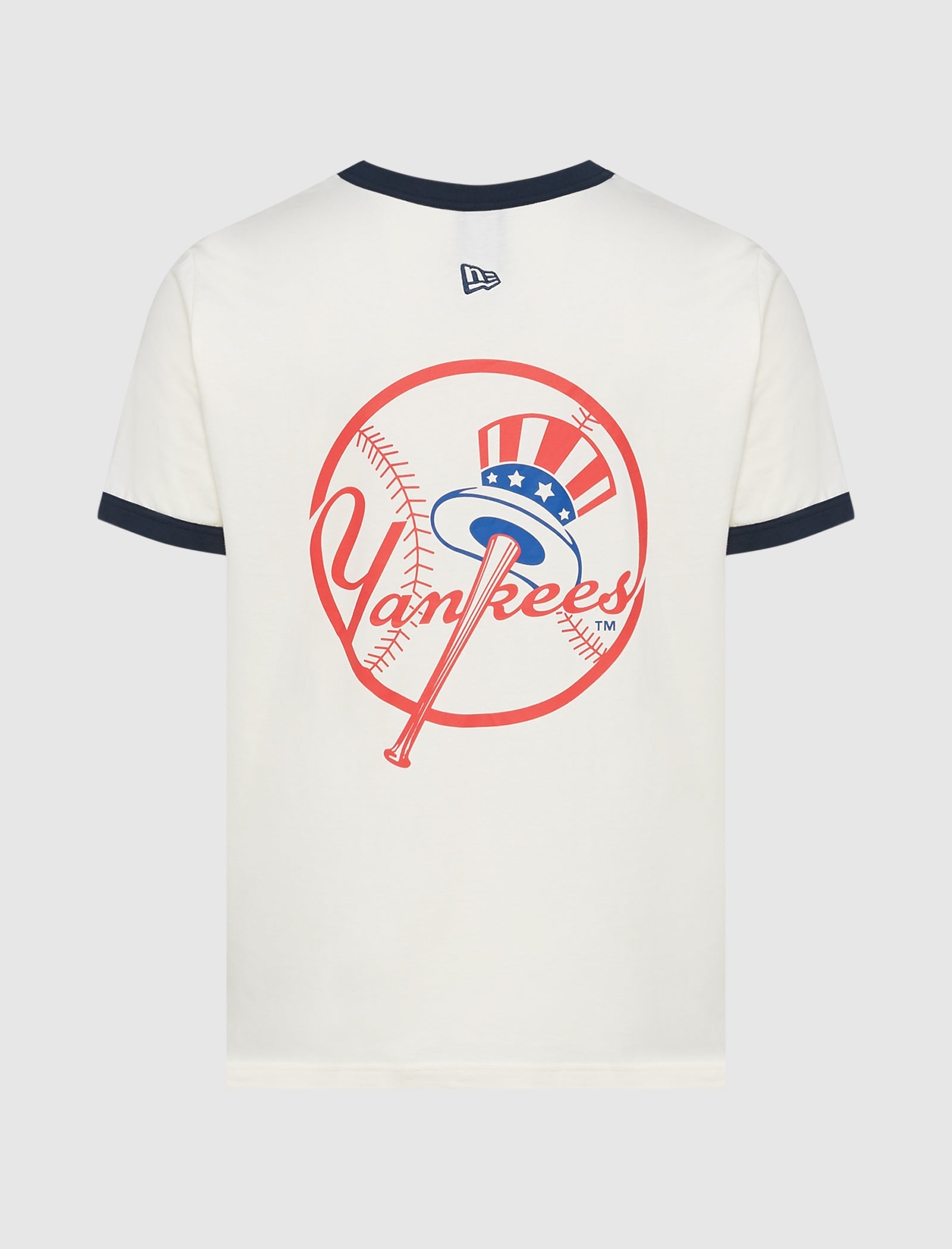 Short sleeve cotton t-shirt. Crewneck. Graphic logo at chest. Graphic NY Yankees logo at back. Contrast trim at neckline and sleeves.