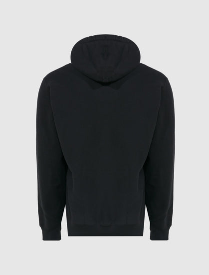 Pullover hoodie. Adjustable drawstring hood. Graphic logo text at chest. Kangaroo pocket at front. Ribbed cuffs and hem.
