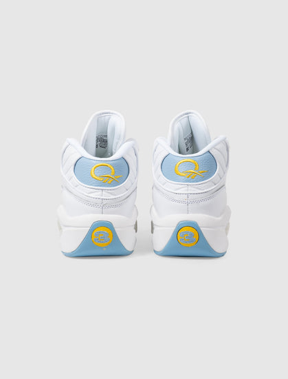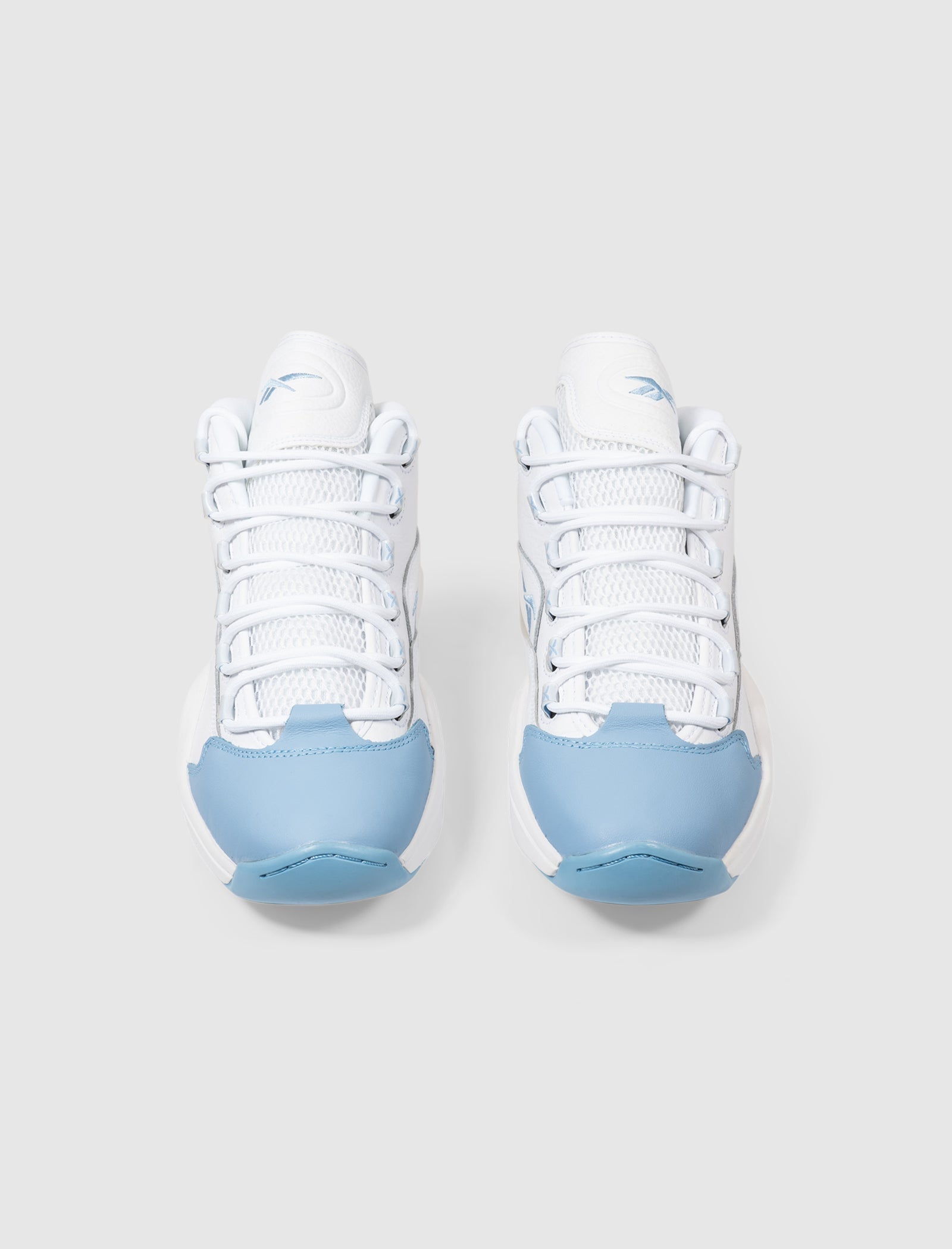 Mid top sneakers. Leather overlays around the toe, lower eyelet panels, and around the heel. Quilted leather collar. Embroidered logo at the heel. Nylon grosgrain tape eyelet loops. Front lacing. Padded mesh and leather tongue with an embroidered logo. EVA foam midsole with exposed Hexalite cushioning at the forefoot and heel. Rubber outsole.