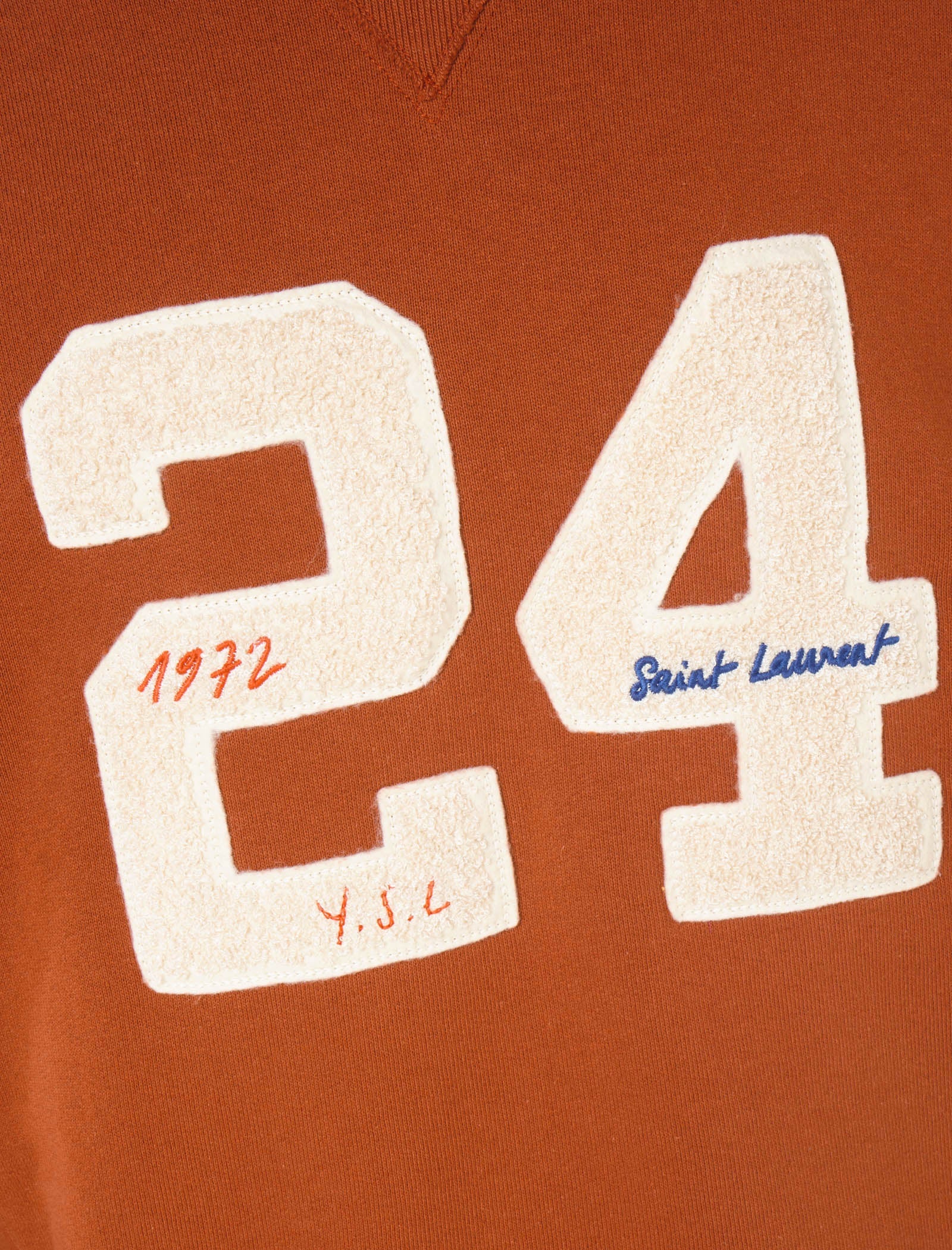 Pullover cotton sweatshirt. Crewneck. Embroidered numbers, dates and logo text at chest. Ribbed cuffs and hem.