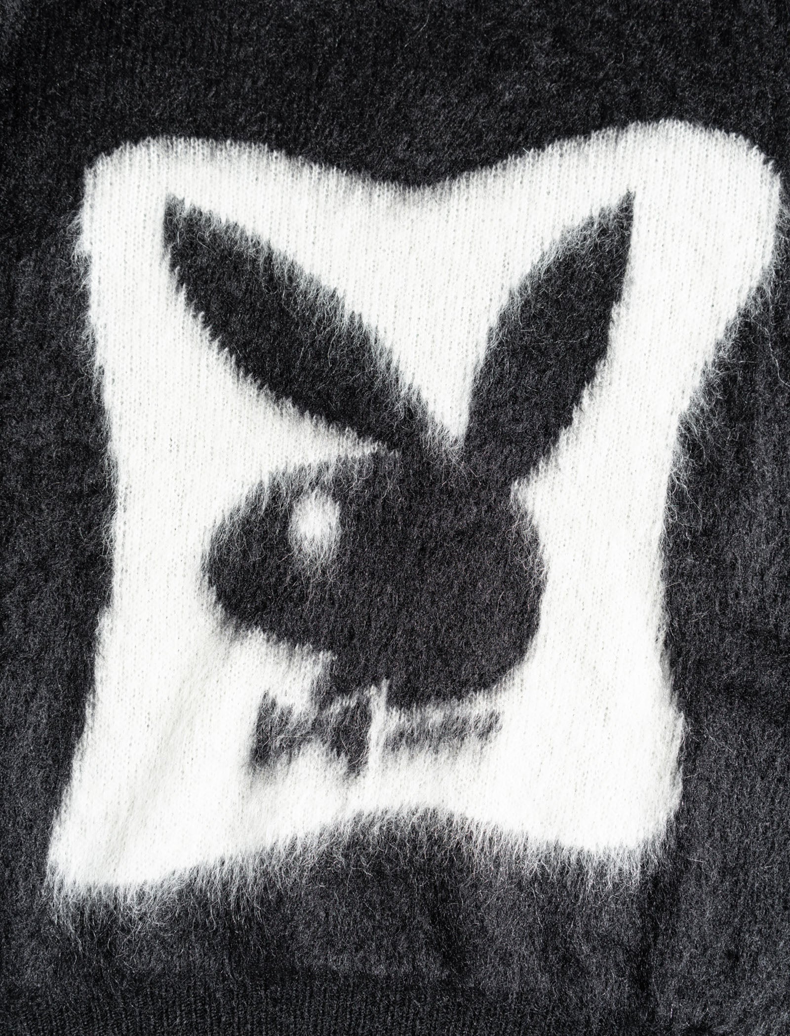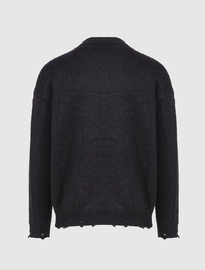 Mohair-blend sweater. Crewneck. Graphic print at front. Distressed cuffs and hem.