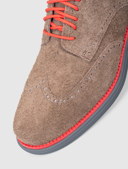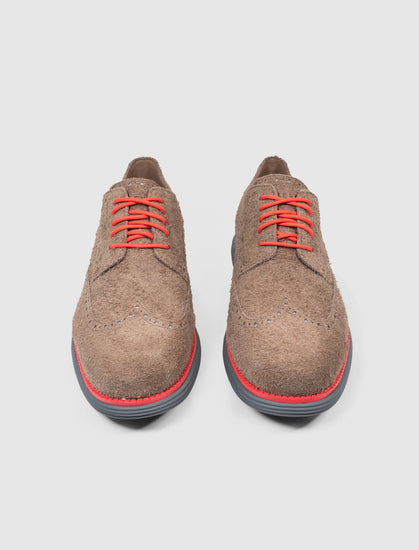 Low top sneakers. Knit upper with tonal wingtip-like knit patterns. 5-eye Front lacing. Ribbed knit collar. Grand.OS midsole and outsole. Rubber grip pads on the toe, and heel of the outsole.
