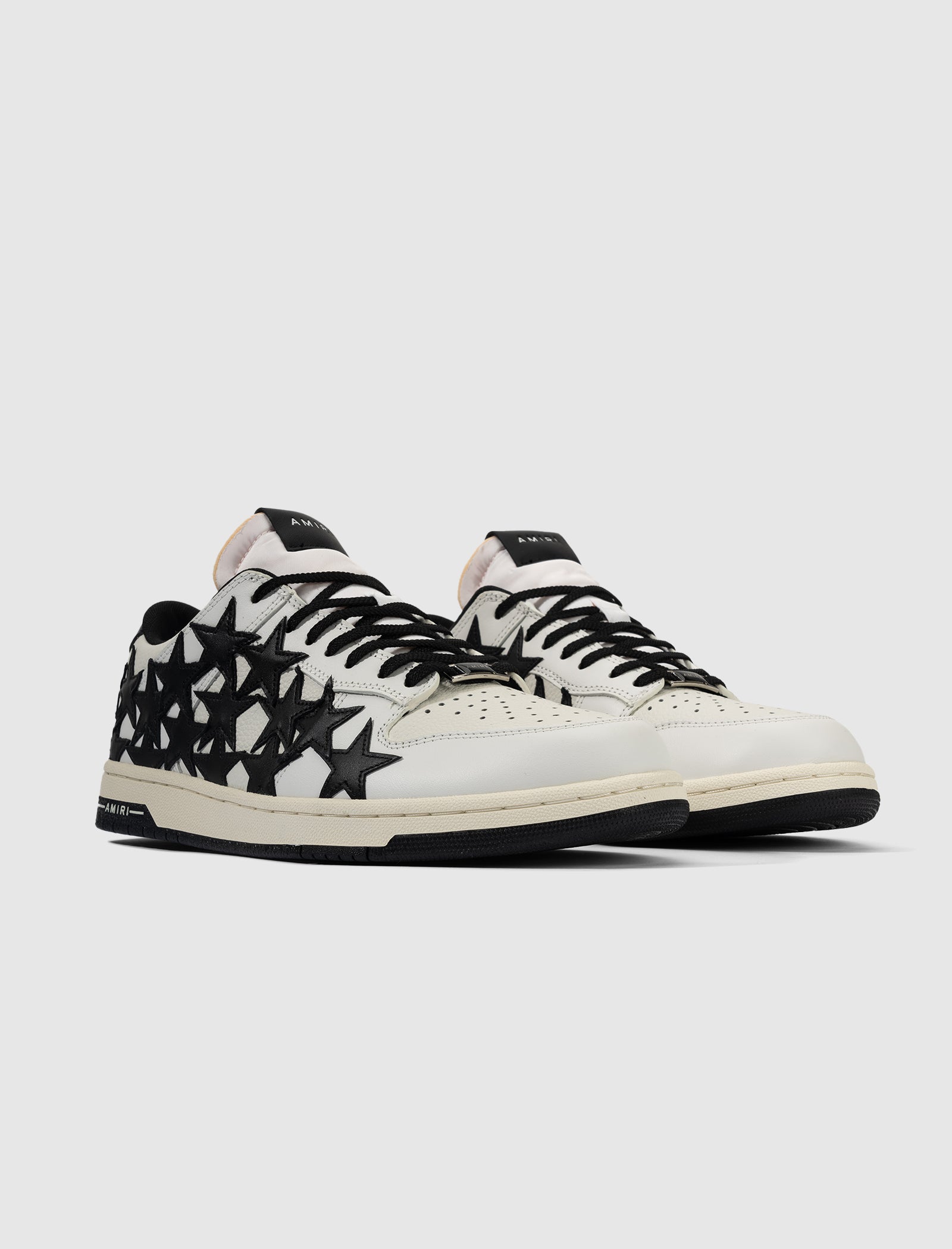Low-top sneakers. Leather upper. Rubber toe cap. Star-shaped leather patches are stitched on the side panels. Leather tongue. Front lacing. Rubber toe. Rubber midsole. Rubber outsole.